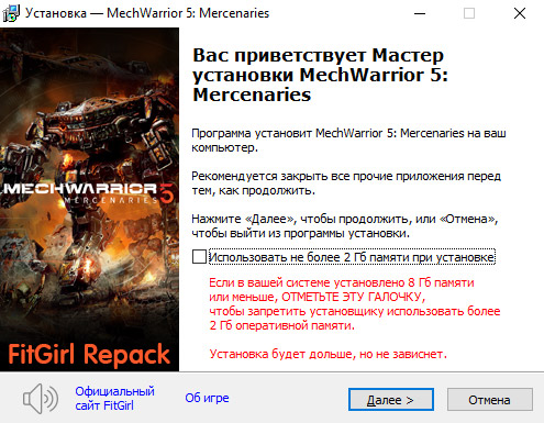 - Для установки репака требуется минимум 2 Гб свободной оперативной памяти (включая виртуальную)