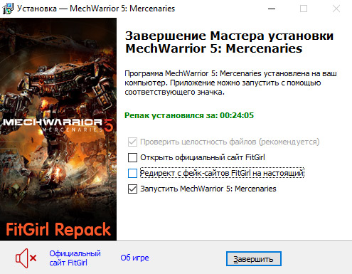 - После установки доступна опция проверки контрольных сумм всех файлов, чтобы убедиться, что репак установился нормально