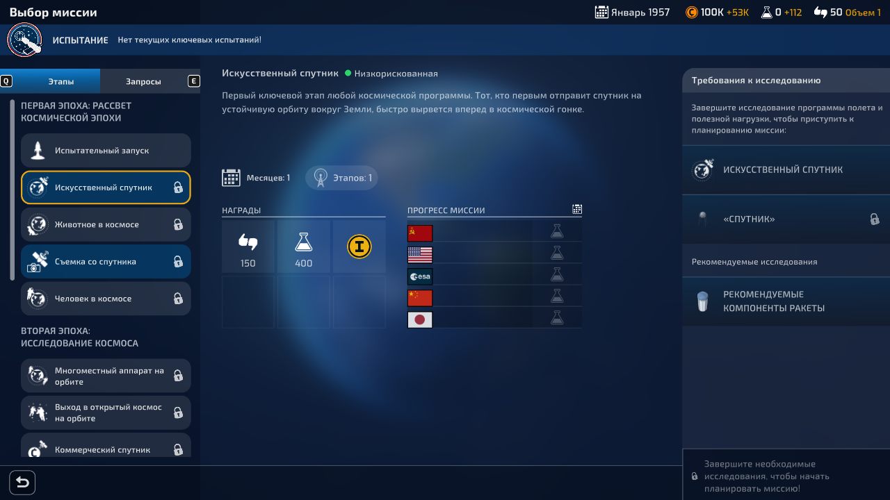 - Выбирайте из пяти уникальных космических агентств — каждое со своими особенностями, базой, транспортными средствами и космическими кораблями.