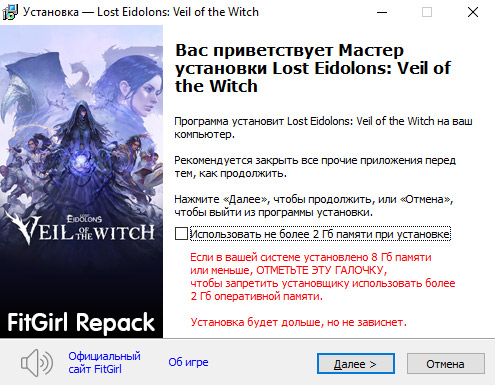 - Репак основан на ISO-образе Lost.Eidolons.Veil.of.the.Witch-RUNE: rune-lost.eidolons.veil.of.the.witch.iso (4, 025, 843, 712 байт)