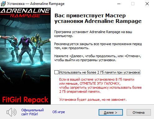 - Для установки репака требуется минимум 2 Гб свободной оперативной памяти (включая виртуальную)