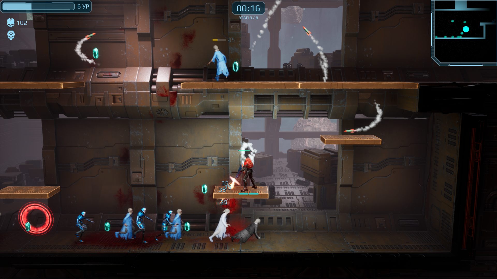 Описание: Adrenaline Rampage - это платформер roguelite, в котором вы играете за солдата с пятью видами оружия, чтобы сражаться с техно-зомби. Выбирайте персонажей и навыки, чтобы мчаться через космический город, убивать уродливых БОССов и выживать в мрачном мире научной фантастики